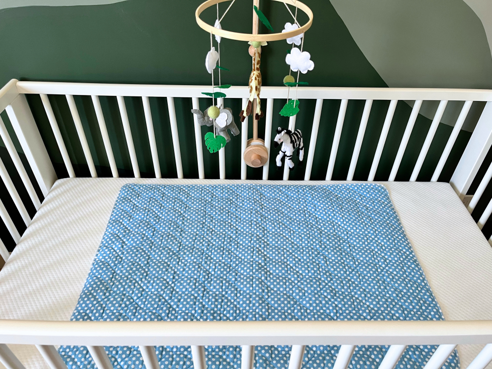 Our Bébé d'amour large-format quilted mat is designed to protect the mattress from nighttime accidents. It can also be used as a play mat on the floor or carpet. Its triple-layer construction ensures excellent absorbency while effectively protecting surfaces. Designed with a waterproof nylon backing and a soft printed cotton top, this mat combines practicality and comfort. The padded interior, made of polyester and viscose, provides a plush feel while locking in moisture. Ideal for use at home or on the go, it adapts easily to any situation.