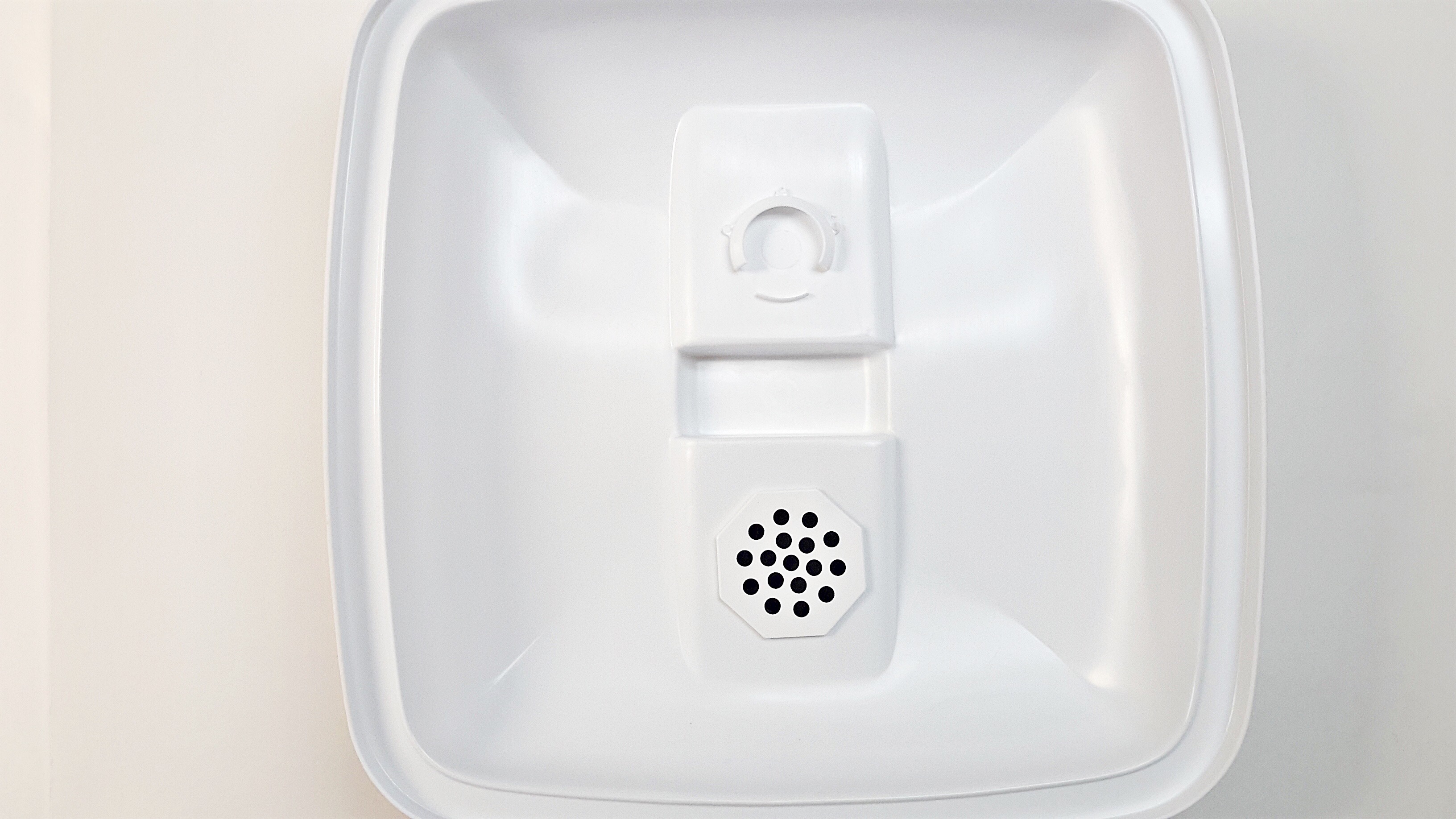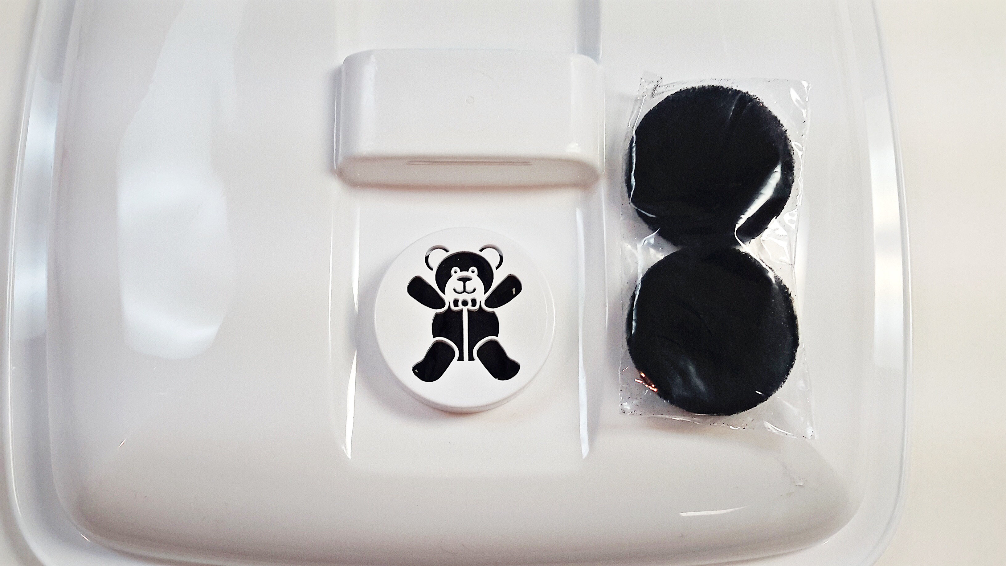 In addition to space for a deodorizing tablet, it includes a compartment for inserting a charcoal filter.