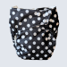 Made with a laminated polyester outer layer and a swimsuit-grade polyester inner lining, this diaper is designed to contain solid waste during aquatic activities while allowing water to flow freely. It contains no absorbent insert, preventing it from swelling in water and allowing baby to move comfortably and freely.