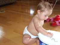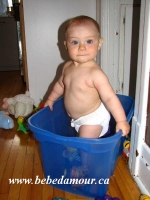 Here is Clémence, comfortable with her Bébé d'amour diaper.