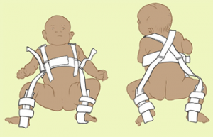 Certains nourrissons souffrent de cette faiblesse congénitale qu'on appelle la dysplasie de la hanche. Cette faiblesse est rapidement dépistée de nos jours et un traitement est rapidement débuté. C'est justement ce traitement qui nous intéresse dans le cadre de cet article! Le nourrisson souffrant de dysplasie de la hanche est positionné en abduction (jambes écartées) de façon constante pendant une période donnée afin que ses hanches se solidifient et deviennent moins lâches.