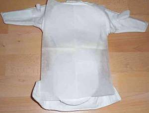 Vous pouvez, si le bébé est très petit, pincer une partie du devant et la rabattre sur le côté.