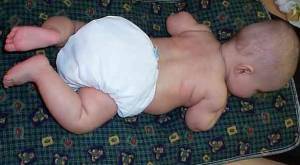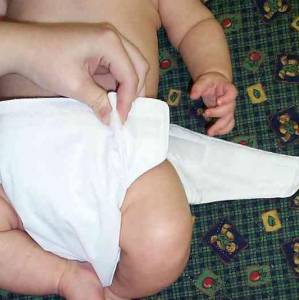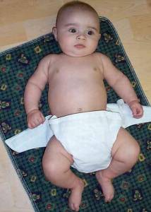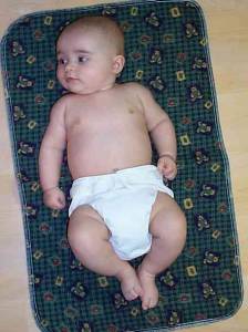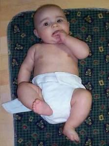 Glissez la couche sous les fesses du bébé et ramenez la section principale sur le ventre.